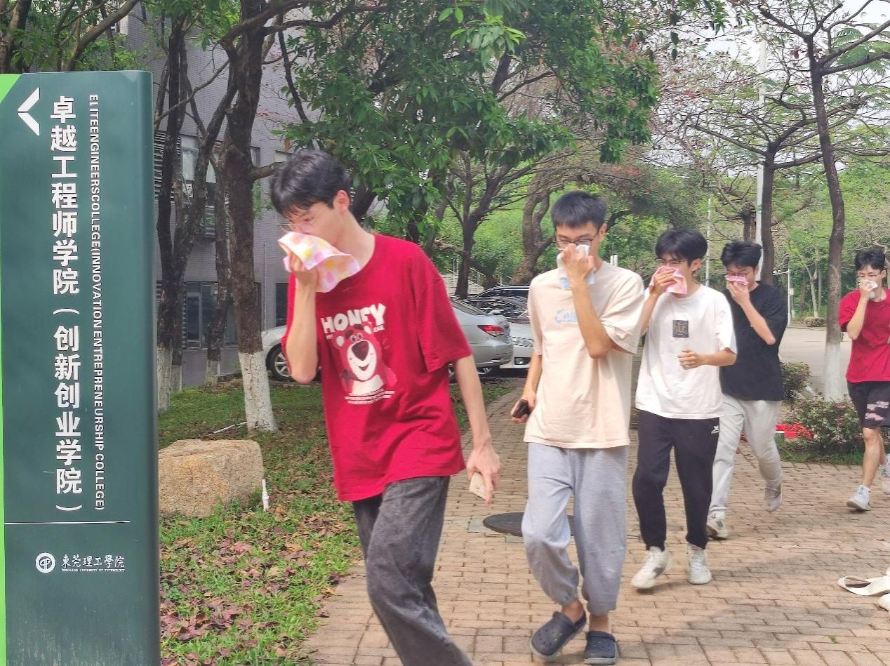 安全保卫部姜因耀副队长首先结合相关案例为老师同学们讲解了消防疏散、撤离等知识及注意事项,向同学们强调了疏散演练的重要性。接着参加演练的学生被分为三组前往两个实验室共三条疏散撤离路线。随着警报响起,各组带队老师有序组织学生按指定路线安全撤离。大家沉着冷静、低头弯腰、捂住口鼻,听从指挥,有序地进行紧急疏散,并迅速到达集合点,随后消防车迅速入场对火点进行扑灭作业。