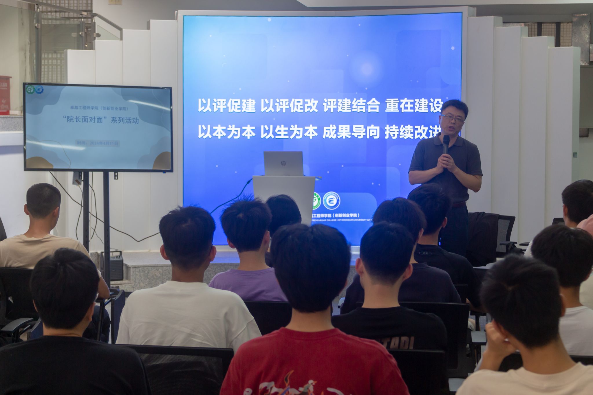 2024年4月11日下午,工程师学院在7A教学楼大厅举办了本学期首场“院长面对面”座谈会,院长陈伟、院党委副书记张敏、系主任代表、全体辅导员以及学生代表出席。