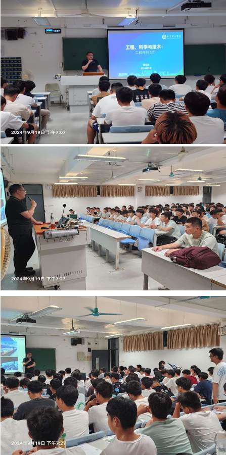 随后,胡院长以工程、科学与技术为主题,引领同学们进入了一场关于知识边界与创新实践的深度探索。他巧妙地将理论讲解与实际应用相结合,不仅阐述了工程、科学与技术的内在联系与区别,还紧密结合我国2022年的十大科技进展,如量子信息、生物育种、深海探测等领域的突破性成就,让同学们深切感受到国家科技实力的飞跃,以及这些成就背后工程师们不懈追求与创新的精神力量。