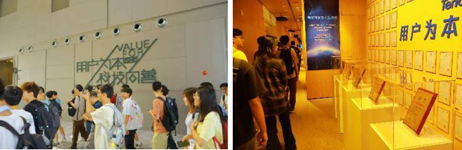 在接下来的参观中,同学们见证了数字技术与智能制造、智能工业的融合,如何促进重工业的高质量发展;同时,他们也了解了智慧交通与智慧金融如何推动社会的高效运行。此外,从腾讯公益与银发科技的成果展示中,同学们感受到了科技中蕴含的人文关怀。腾讯助力的科学探索奖、共富乡村项目与五分钟社会救援圈等项目,更是展现了腾讯的初心与追求。“科技是一种能力,向善是腾讯的选择,让我们一起在更好的未来相遇”,这是腾讯企业文化中的重要组成部分。