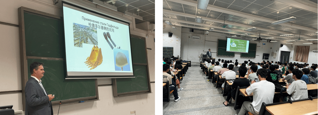 卡普特金院士从历史角度,讲述材料发展历程,从石器时代到青铜器时代,再到铁器时代;从传统人力生产到工业革命后的机械化生产,材料的变革与人类文明发展紧密相连。在讨论近代钢铁产量时,卡普特金院士特别提及在2015年中国的粗钢产量已高达803830百万吨,让学生深刻认识到中国钢铁工业发展迅猛及材料产业在全球工业格局的核心地位。