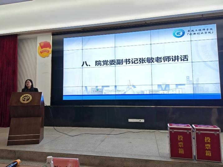 随后,院党委副书记张敏老师讲话。她对本次学生代表大会的顺利召开及新一届学生会骨干的当选表示祝贺,肯定了上一届学生会的工作成效,并对新一届学生会成员们的工作提出了期望。
